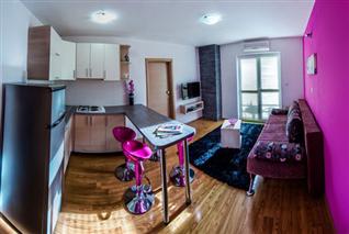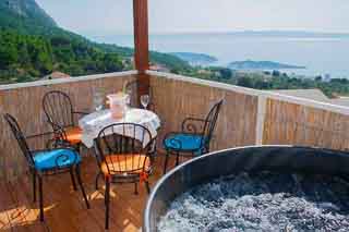 Apartment RUSTIKA A1 / 72 m2 + terrace / Luxuriously furnished duplex apartment for rent is located in the town of Veliko Brdo above Makarska, surrounded by olive groves, away from the noise provides guests a quiet holiday. The apartment consists of two floors, has 2 double bedrooms + living room + hall + kitchen + bathroom / WC and a separate WC and terrace with jacuzzi and beautiful views of the city, sea and islands.