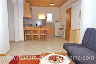 Ferienwohnung Dzajic A3 / 70 m2 + balkon / 1. Etage / Befindet sich im zentralen Teil von Makarska in einer ruhigen Gegend, nur 250 m vom Meer und Sandstrand, nahe dem Strand, Restaurants, Geschäfte, Bars und Freizeiteinrichtungen machen sie ideal für Gäste, die mit dem Flugzeug in Makarska kommen. Die Appartements bestehen aus 2 Doppelzimmer + Wohnzimmer + offene Küche und Esszimmer und Bad / WC und Balkon.