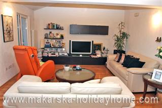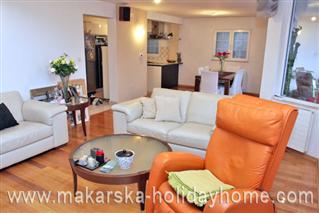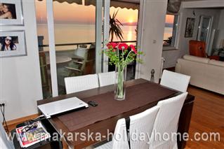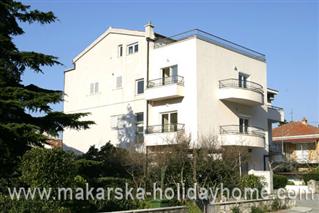 położony w centralnej części Makarskiej w pobliżu plaży i hotelu "Meteor", znajduje się zaledwie 30 metrów od plaży i centrum miasta.Mieszkanie składa się z dwóch pokoi, salon, kuchnia, jadalnia + łazienka + balkon z widokiem na morze, garaż.