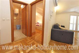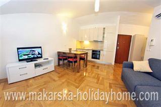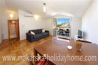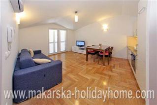 Apartament Židić A1 / 37 m2 / 4. piętro / located in the central part of the Makarska near the beach and hotel "Meteor", located just 30 meters from the beach and downtown. The apartment consists of: 1 double bedroom, living room, kitchen, dining room + bathroom + balcony with sea view, garage.