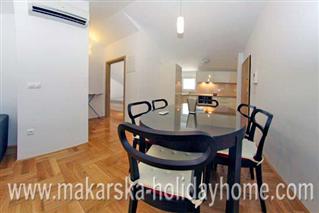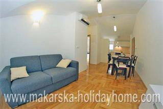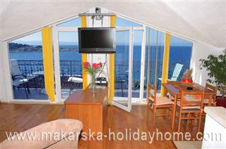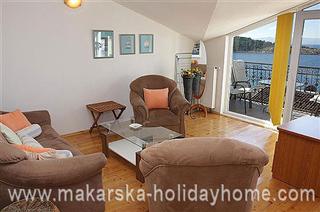 znajduje się w zachodniej części miejscowości Makarska, w pobliżu plaży i hotelu "Biokovka", zaledwie 100 metrów od piaszczystej plaży i 800 m od centrum miasta.Mieszkanie składa się z dwóch pokoi, salon, kuchnia z jadalnią + 2 łazienki / WC + 4 balkony z widokiem na morze.