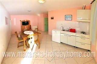 Apartament Mario / 120 m2 + terasa / 3. piętro / Newly built luxury and modern apartments for rent, located on a hill above the old part of the city of Makarska, located in quiet area, isolated from the noise and bustle and yet close to all entertainment. The apartment consists of 3 double bedrooms, living room, dining room, kitchen, bathroom / toilet, terrace and balcony.