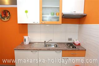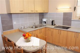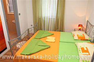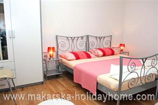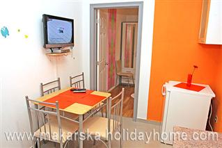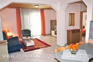 Ferienwohnung Dzajic A3 / 70 m2 + balkon / 1. Etage / Befindet sich im zentralen Teil von Makarska in einer ruhigen Gegend, nur 250 m vom Meer und Sandstrand, nahe dem Strand, Restaurants, Geschäfte, Bars und Freizeiteinrichtungen machen sie ideal für Gäste, die mit dem Flugzeug in Makarska kommen. Die Appartements bestehen aus 2 Doppelzimmer + Wohnzimmer + offene Küche und Esszimmer und Bad / WC und Balkon.