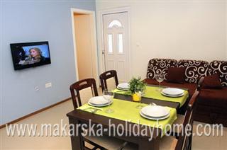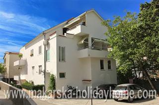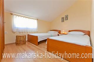 Ferienwohnung Marita A6 / 100 m / 2. Etage / Befindet sich im zentralen Teil von Makarska auf einem Hügel über der Altstadt von Makarska, aus dem nähen einen schönen Blick auf das Meer, die Inseln und die Stadt. Die Wohnung besteht aus 3 Doppelzimmer + Küche, Wohnzimmer + Bad / WC und einen Balkon mit Blick auf das Meer und die Inseln Brac und Hvar.